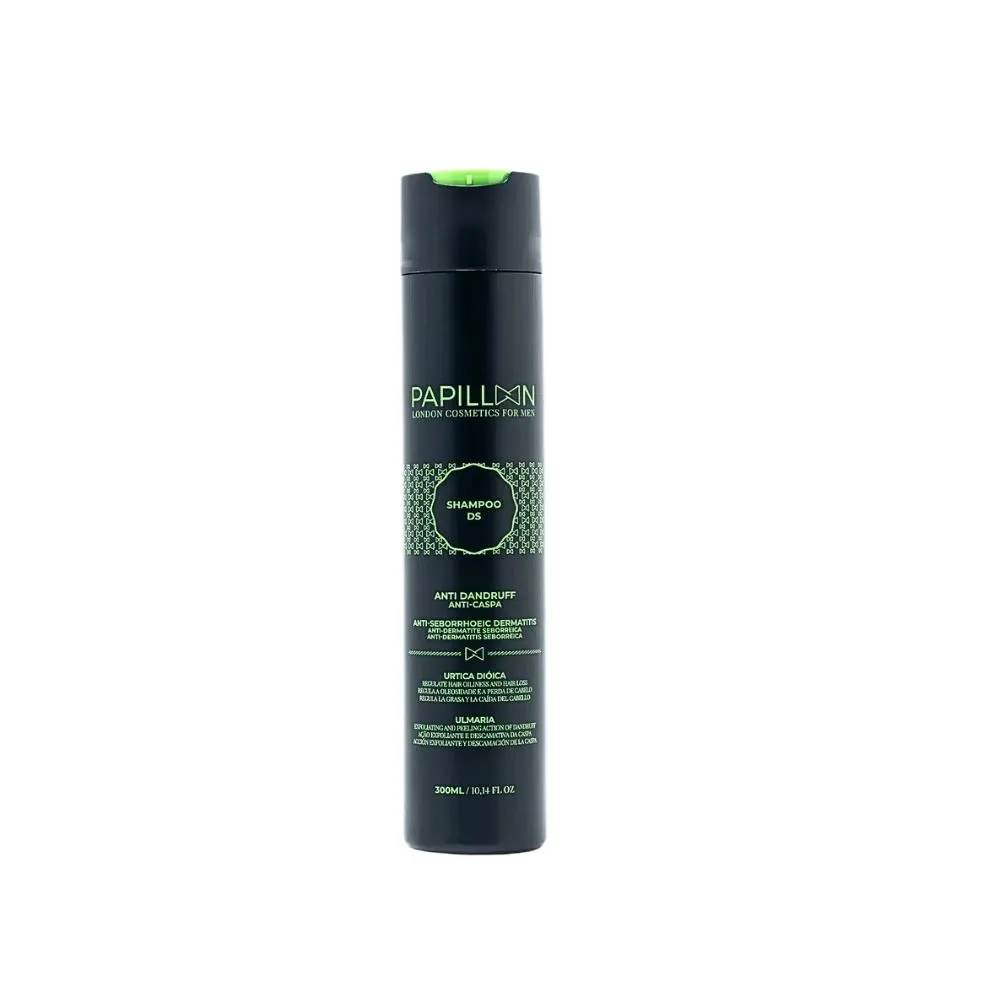 Champú Anticaspa Papillon 300 ml especialmente formulado para ayudar a eliminar la caspa y mantener el cuero cabelludo limpio y equilibrado.
