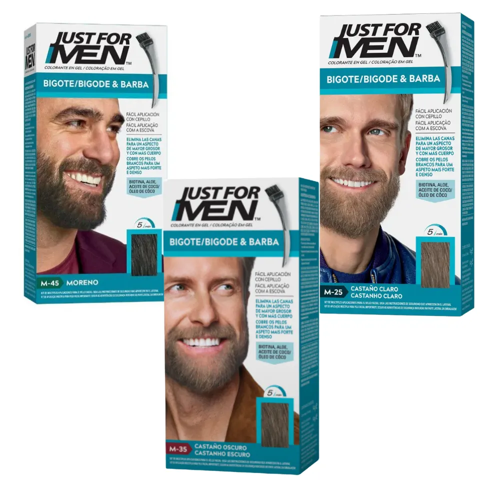 Recupera la intensidad de tu vello facial con el gel colorante Just For Men para Barba y Bigote. Diseñado específicamente para penetrar en las fibras más gruesas y resistentes del rostro, este tinte elimina las canas de forma precisa, devolviendo un aspecto más denso, uniforme y joven a tu barba en una sola aplicación.