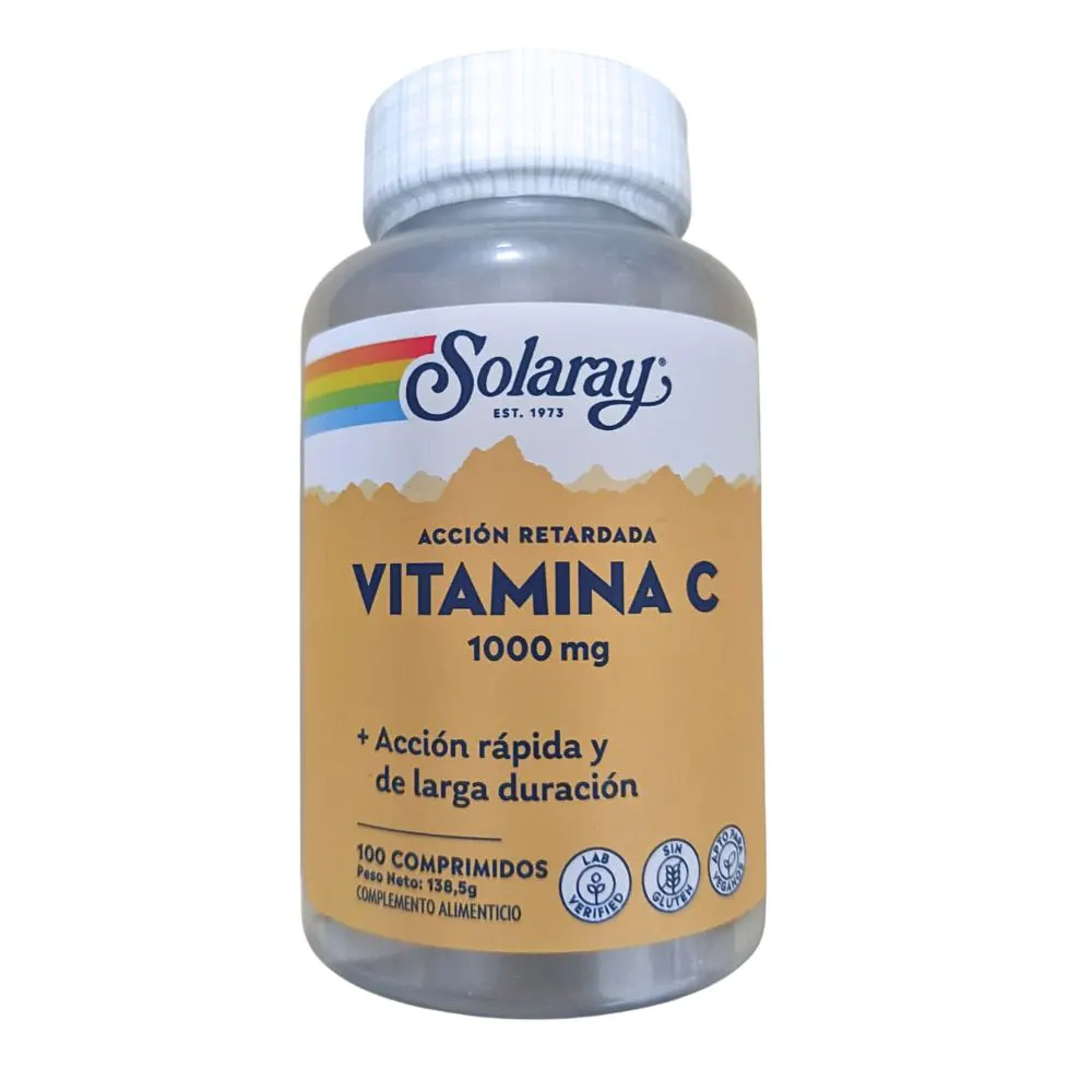Solaray Vitamina C 1000 mg  100 comprimidos es un complemento alimenticio de alta potencia diseñado para fortalecer el sistema inmunológico y proteger al organismo del estrés oxidativo. Su fórmula aporta una dosis eficaz de vitamina C en comprimidos fáciles de tomar, sin aditivos innecesarios y apta para personas con dietas especiales, como veganos o celíacos.